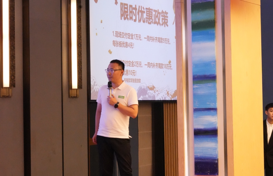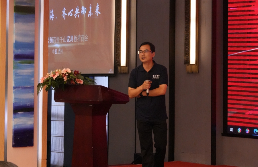 大會現(xiàn)場,滿經(jīng)理對家具板招商政策進(jìn)行詳細(xì)解讀。對于合作家具廠,千山將提供全方位的政策支持,包括樣冊支持、樣柜支持、區(qū)域保護(hù)、培訓(xùn)支持、廣告支持、抖音扶持、訂單引流 ,積極助力市場開拓和產(chǎn)品推廣。