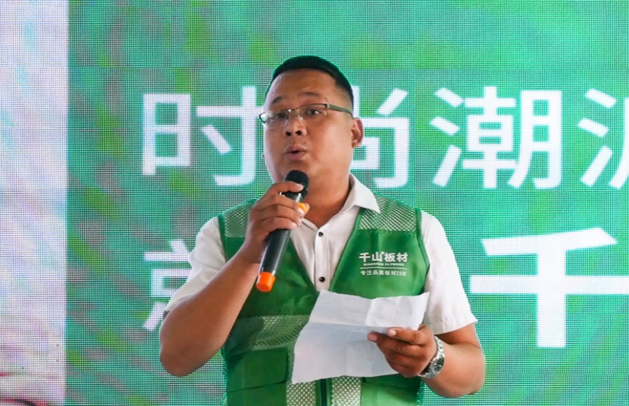 千山板材北方大區負責人史生平致辭,史總分享了千山板材對家具板質量和技術的把控,希望帶給消費者朋友們一個健康、環保、舒適的家庭環境。
