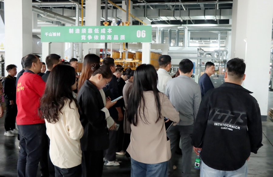 學習會結束后,王殿忠經理帶領大家參觀了千山的現代化生產工廠,從板材品類、生產工序、檢驗出廠等方面深入了解板材生產環(huán)節(jié)。