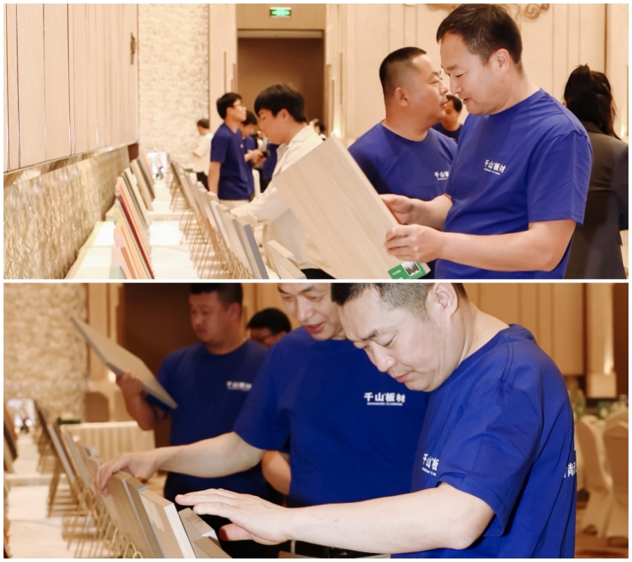 下午5點(diǎn),合作伙伴們陸續(xù)到達(dá)活動(dòng)現(xiàn)場,在千山板材風(fēng)采展示墻簽到并合影留念。隨后,伙伴們來到千山板材樣品展示區(qū),仔細(xì)參觀2024款系列產(chǎn)品。