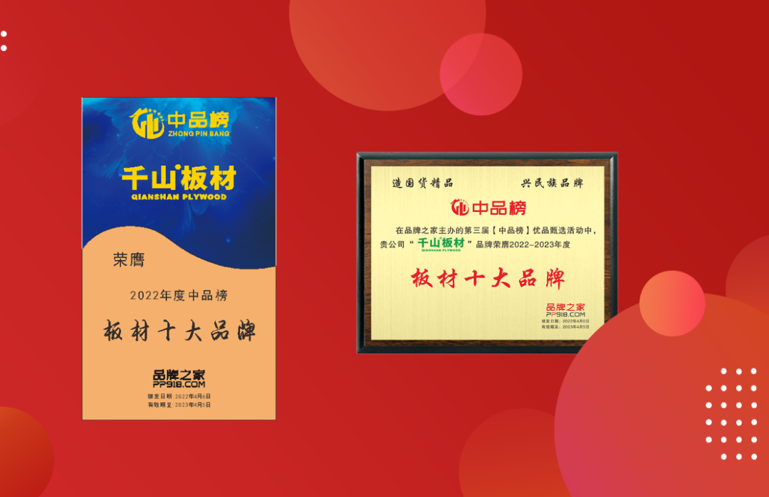 繼2021年榮獲中華板材網(wǎng)“中國板材十大品牌”、“生態(tài)板十大品牌”雙項(xiàng)殊榮后,千山板材載譽(yù)攀登,多年來相繼斬獲“板材十大品牌”、“板材影響力品牌”、“家具板十大品牌”、“2023年度最受設(shè)計(jì)師喜愛建材品牌”等多項(xiàng)行業(yè)榮譽(yù),傳遞優(yōu)秀企業(yè)的榜樣力量,積極助推行業(yè)發(fā)展!