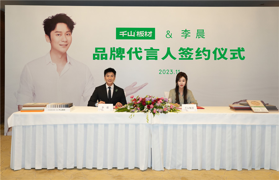 2023年11月,繼“時(shí)尚潮派衣柜 就選千山板材”全新廣告語推出后,千山再次迎來品牌戰(zhàn)略升級大動(dòng)作,簽約實(shí)力派演員李晨為品牌代言人。簽約儀式在北京舉行,集團(tuán)副董事長劉玉蓮出席簽約儀式,開啟了品牌的全新進(jìn)階。