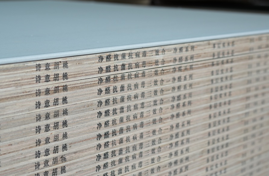 正品千山板材側(cè)邊均印有清晰、規(guī)整的噴碼信息,包含千山板材產(chǎn)品型號(hào)、甲醛釋放限量等級(jí)、花色、板芯、生產(chǎn)日期等,為千山板材“合格證”。