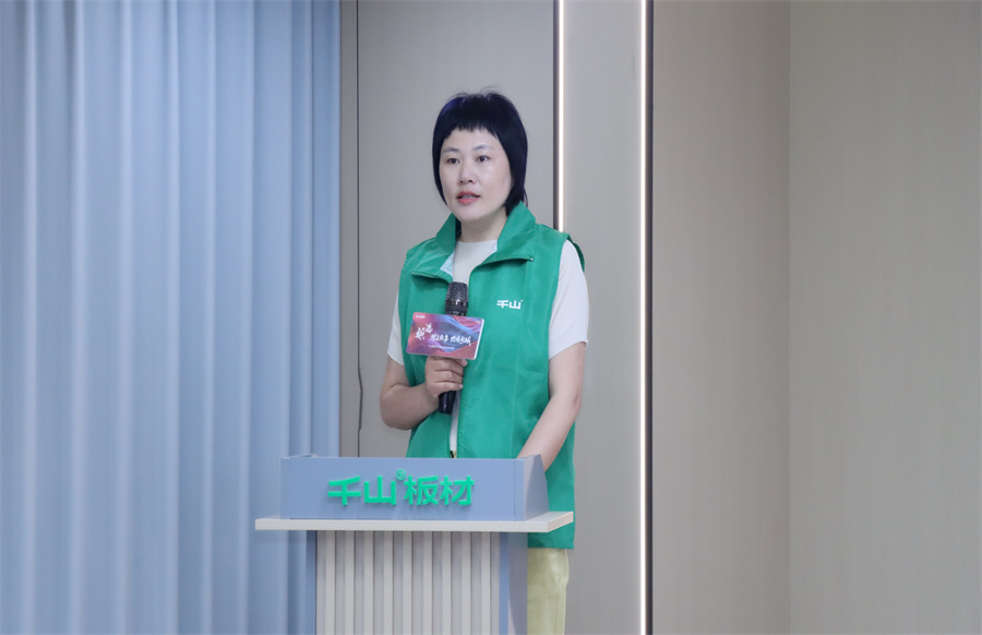 千山應用設計研發中心宋英豪設計師分享了千山板材的場景化應用,通過三維動畫融合產品展示,從花色肌理、材質工藝到空間應用場景進行立體化動態演繹,并將針對終端設計效率的痛點持續更新產品庫,推動終端服務的再升級。