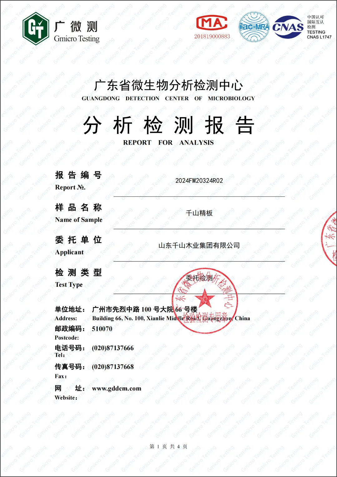 千山大豆膠板材凈醛系列具有凈醛、抗菌、抗病毒三重防護,能夠持久凈化室內空氣,對大腸桿菌(AS1.90)和金黃色葡萄球菌(AS1.89)的抗(細)菌率>99.9%,對甲型流感病毒H1N1的抗病毒活性率>99.9%。