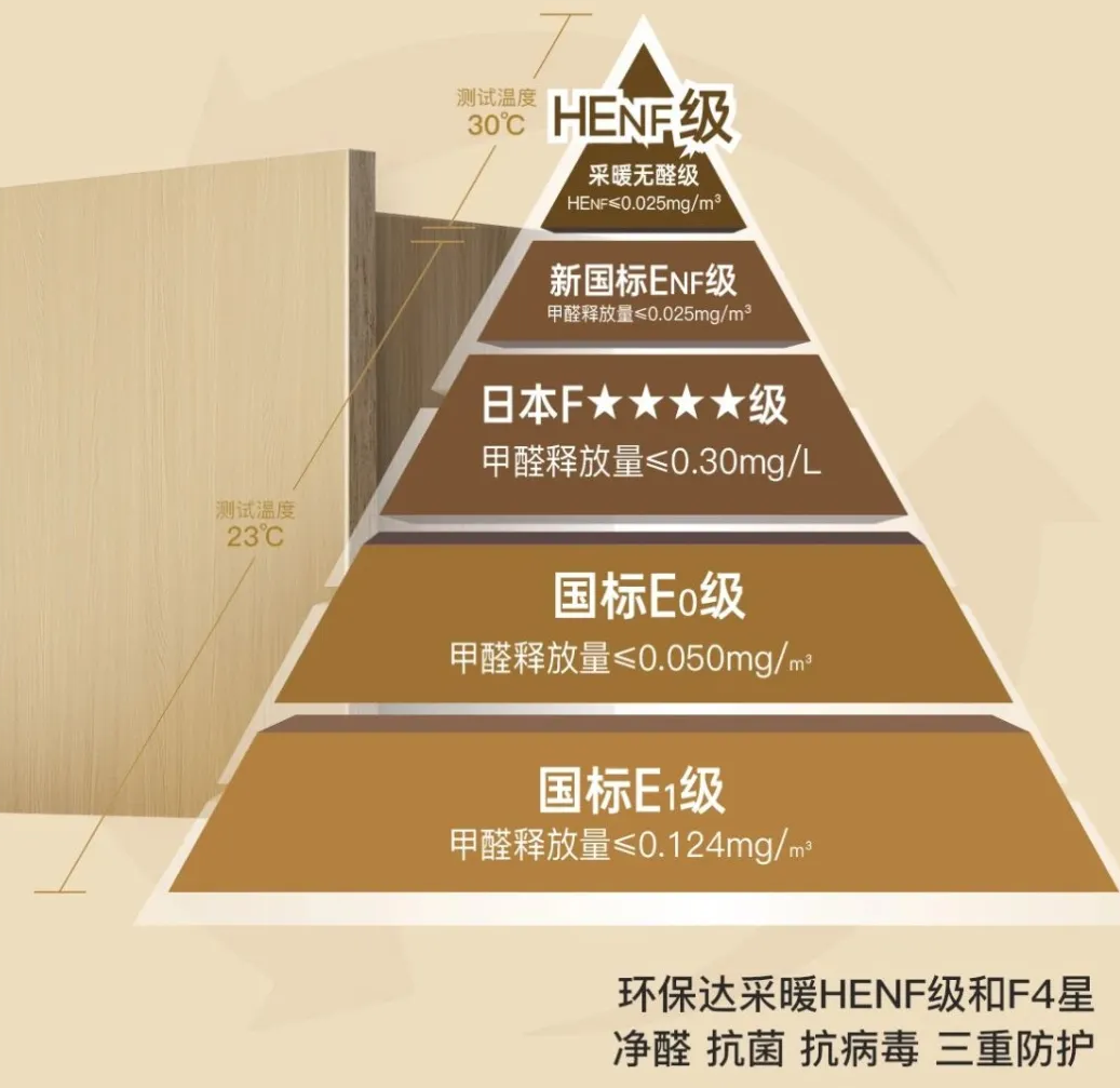 采用無醛MDI膠,生產全過程無醛添加,環保達采暖HENF級,同時通過F4星環保標準檢測,以“雙環保”直擊高環保客群需求。離子晶體板在北方供暖及南方濕熱環境條件下,甲醛釋放量仍可保持極低水平。